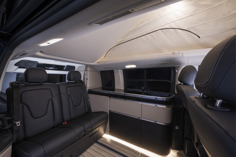 · Novo conceito de iluminação: A iluminação ambiente LED no teto elevável proporciona vários ambientes, selecionáveis pelo utilizador – desde luz fria e energizante, até tons quentes e acolhedores – conforme os desejos dos ocupantes. Além disso, um novo teto de abrir deslizante permite a entrada de mais luz natural e de ar fresco no interior. À noite, proporciona uma vista desimpedida para contemplar o céu estrelado.